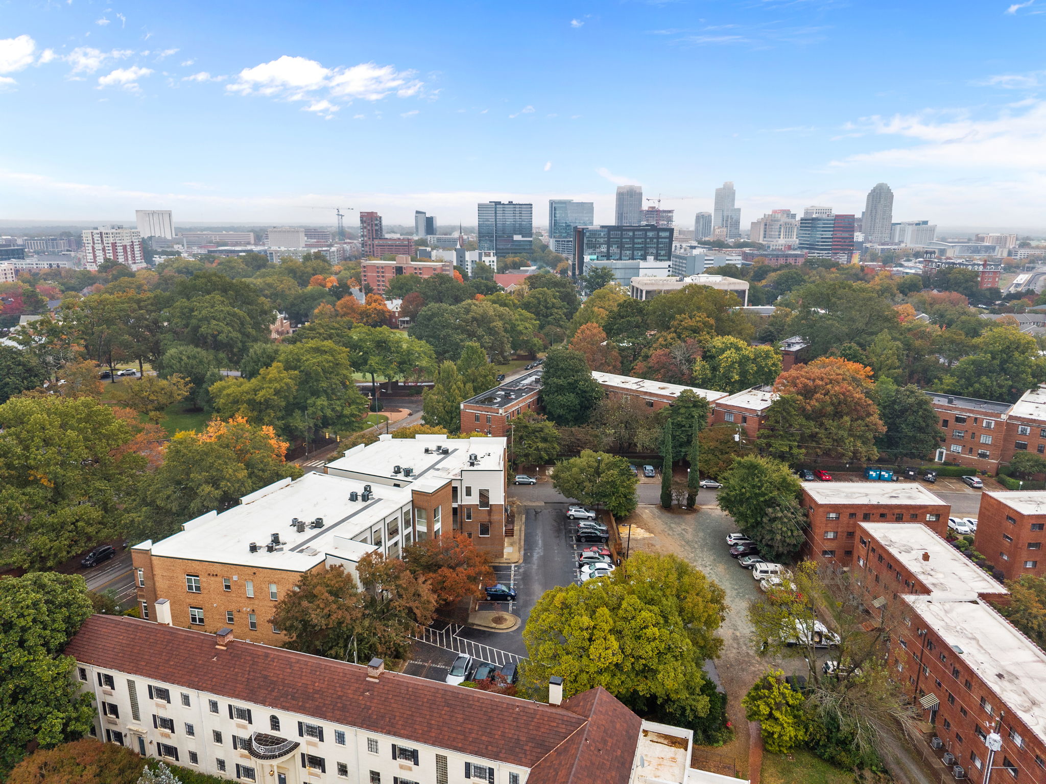 Here's a rare opportunity for a perfectly placed condo where Glenwood South and downtown Raleigh connect. This top floor, 2-bed/2-bath unit features an open floorpan perfect for entertaining, a dedicated office, hardwoods, a fireplace, gas cooktop, and heating and cooling systems replaced in 2024. An easy stroll to all six of downtown Raleigh's districts, as well as Daniels Village and the NC State campus. French doors in the living room overlook Hillsborough Street and the well-maintained grounds of The Saint Mary's School. Refrigerator, washer, and dryer to all convey. One dedicated parking space and ample guest parking nearby. Elevator access adjacent to the parking lot. This location is simply unbeatable and units in this community do not come available often!